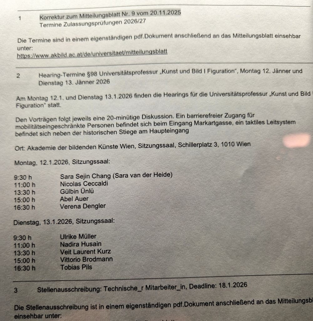 Leider ist die Akademie in Wien kein Ort, an dem ich mich besonders gern [länger als nötig, s. Architektur] aufhalte. leider leider ein lässiger Treffpunkt muß her. am besten ohne Konsumzwang [und mit Fenstern]